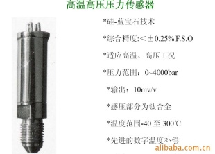 产品名称:石油石化井下专用压力传感器 产品描述: * 先进的钛/硅-蓝宝石技术 *综合精度:<±0.25% F.S.O *适应高温、高压工况 *压力范围:0~4000bar *输出:10mv/v *感压部分为钛合金 *温度范围-40至300℃ *先进的数字温度补偿 * 外径≤16mm |