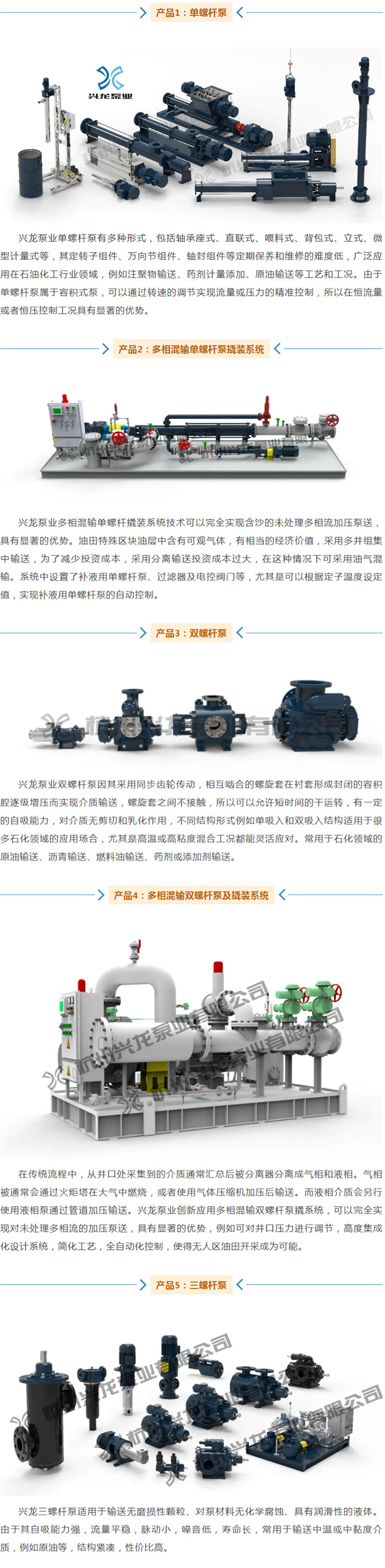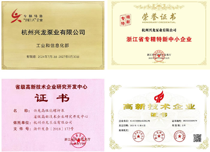 杭州兴龙泵业有限公司创立于1998年,是高新技术企业,省级研发中心,荣获专精特新和小巨人企业称号,专业从事泵送系统的研制和生产,产品包括单螺杆泵、双螺杆泵、三螺杆泵及其配套的集成系统,企业通过了中国船级社CCS质量体系认证和型式认可,是中国螺杆泵专业委员会委员单位,全国专业标准化技术委员会容积泵分技术委员会委员,参与或主导行业和国家标准数项,其中包括《GB/T44045-2024石油、石化和天然气工业用转子泵》等国家标准,对相关核心技术拥有完全的自主知识产权。公司拥有先进的生产设备和检验装置,有充分的经验为客户提供定制化的产品设计、制造和验收。公司的4.5MPa-600m3/h双螺杆泵等产品还通过了浙江省经济和信息化厅认定的浙江省工业新产品。