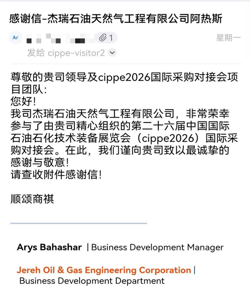 会后,多国采购商、参会企业纷纷发来感谢信与反馈,对 cippe搭建的高效供需对接平台给予高度评价与诚挚感谢。