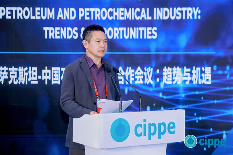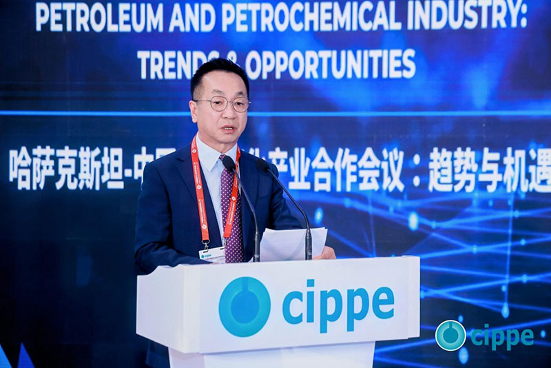 中石化炼化工程(集团)股份有限公司副总经理孙宝平先生发表主题演讲,全面介绍集团发展历程、国际化业务布局,并重点阐述了在哈萨克斯坦的重要项目成果与未来合作愿景。