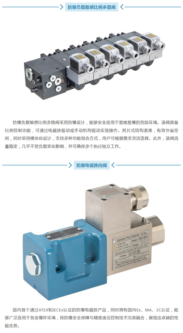 华液产品种类丰富,涵盖了阀类液压元件整个领域,主要包括高压常规液压阀、比例阀、插装阀、隔爆阀以及阀用(比例)电磁铁,已广泛应用于多个行业,部分产品已替代进口,达国际先进水平。