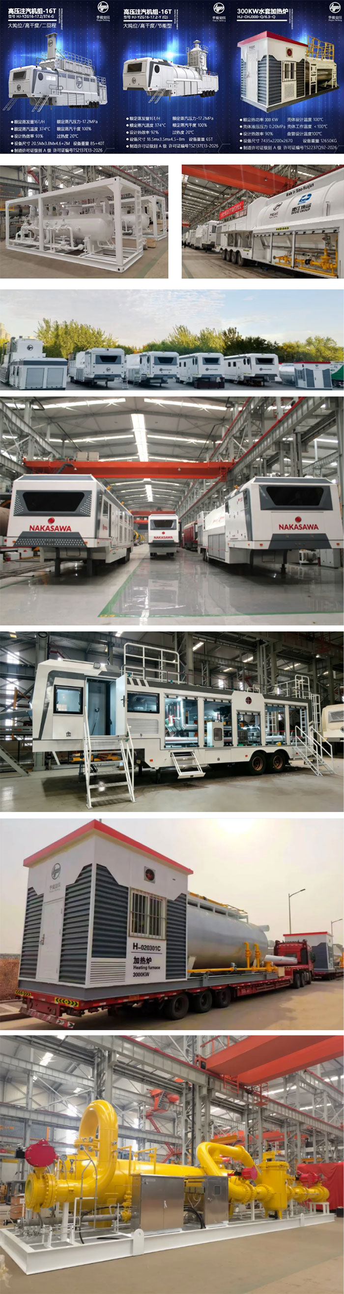 2026年,公司重磅推出最新研发的第三代移动式注汽锅炉。它采用一体式结构,二回程设计,并将球形分离器融入其中,创造出了新一代注汽锅炉产品,实现了“大吨位、高干度、节能型”的科技创新成果,大幅提升了稠油开采及注汽服务的经济效益,是替代传统设备的最佳选择。该设备拥有自主知识产权,核心技术水火跟踪,两相流检测,自动化控制,创造出重大的创新成果。它是油田开采稠油的专用注汽设备。被广泛应用在全球各油田稠油及超特稠油的开采中,是稠油开采的核心设备。