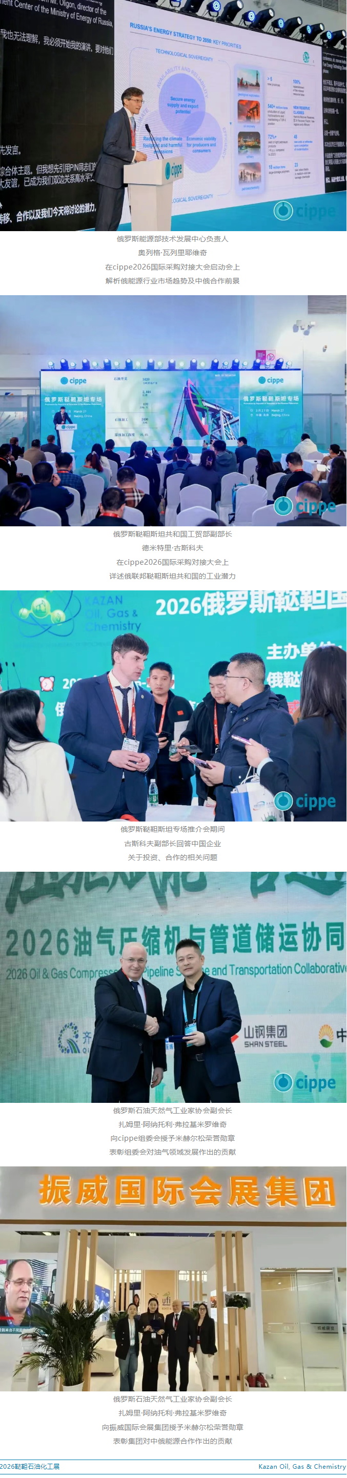 展会吸引全球目光,俄罗斯作为中国重要的能源合作伙伴,俄罗斯能源部技术发展中心负责人、俄鞑靼斯坦共和国工贸部副部长、俄罗斯石油天然气工业家协会副会长等国家及地区政府、协会领导亲临cippe2026,深度解析中俄能源合作前景,鼓励中国企业赴鞑靼斯坦参展考察、投资合作。
