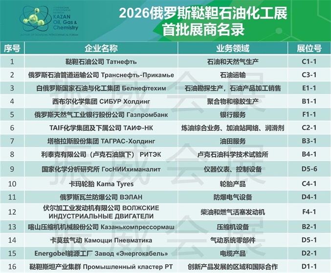 2026鞑靼石油化工展首批展商名录重磅发布: