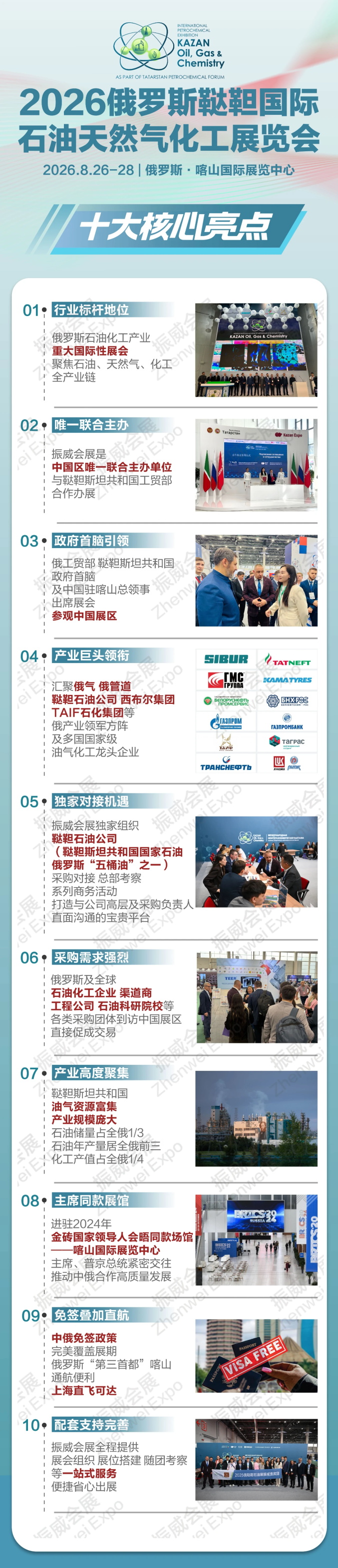 展会落地俄罗斯石油化工产业高度聚集地,集结行业翘楚和产业核心方阵,进驻金砖国家领导人会晤同款场馆,叠加航班直飞和免签政策,带您便捷出展、高效破局!
